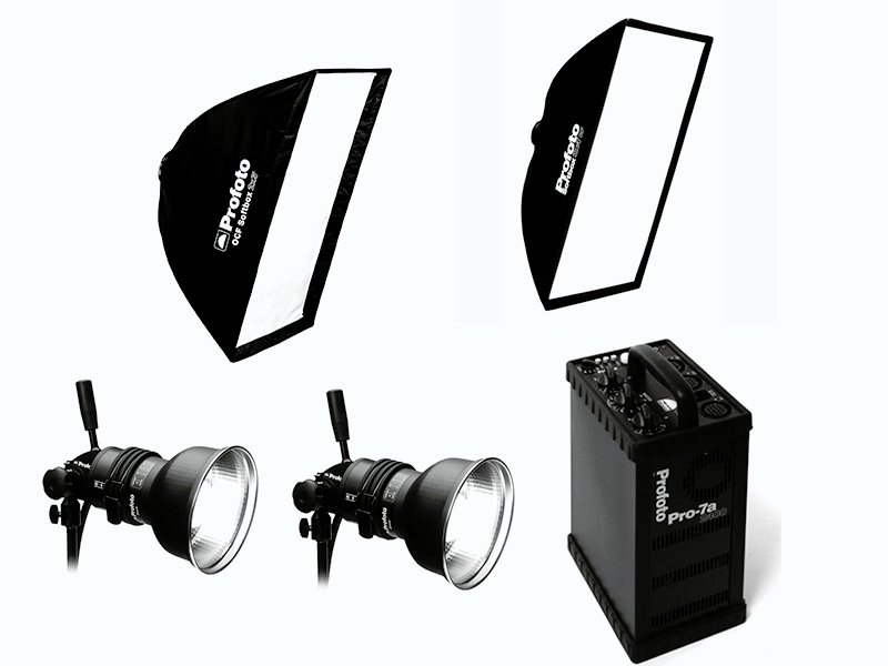 Generador Profoto Pro-8a 2400 con 1 Prohead UV 500W, reflector New Zoom, Softbox 3×4′ o 5′ octa