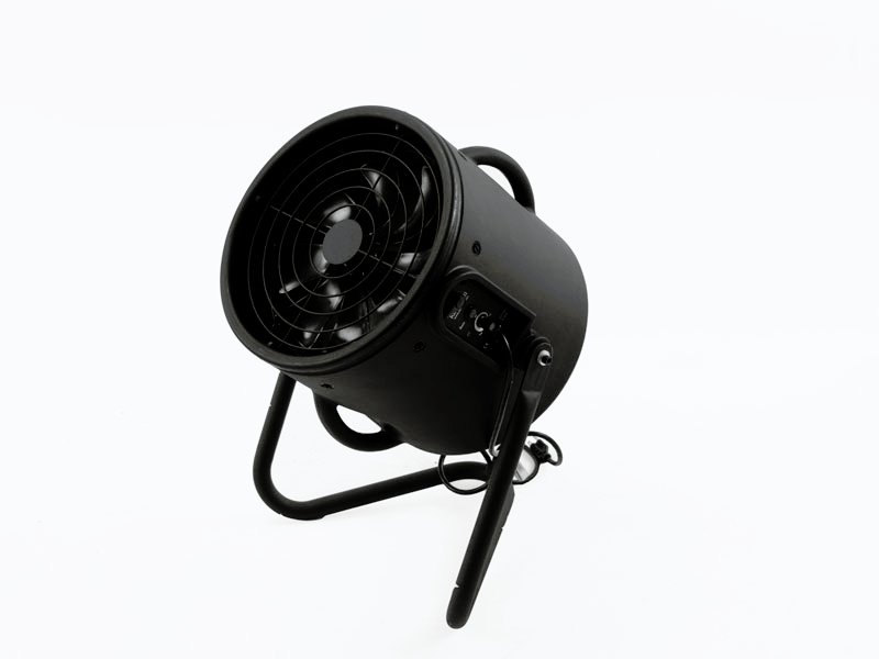 Máquina de viento de alta eficiencia, peso 12kg, 35x48x55cm. Difusión de viento ajustable entre 10 y 45 grados o sea entre 1m y 2.5m de diámetro a 3 metros de distancia.